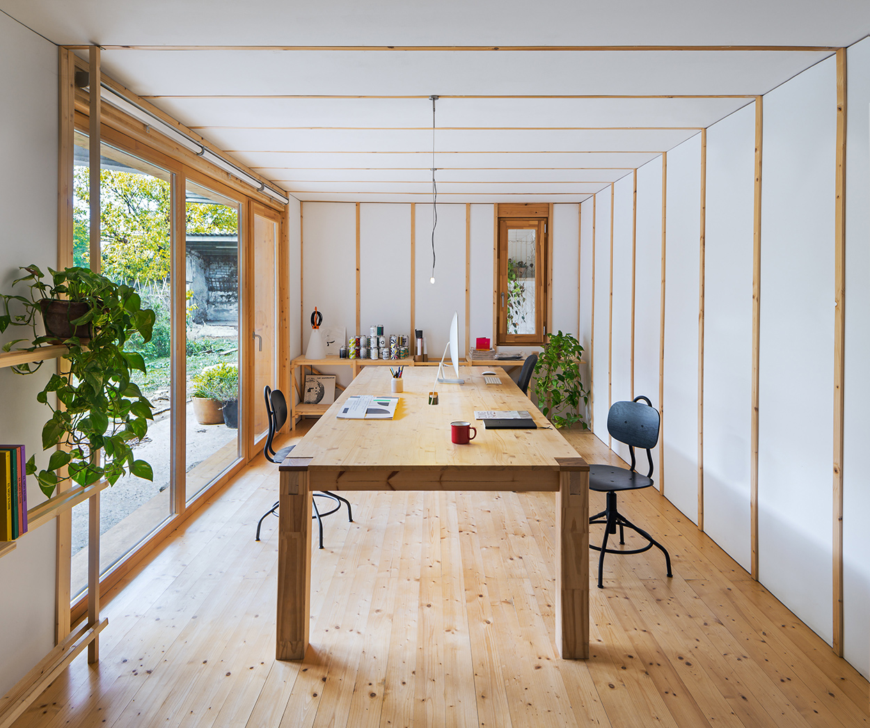 els forjats com els tancaments. Tot el conjunt està construït completament en sec. El projecte, íntegrament de fusta, s'ha